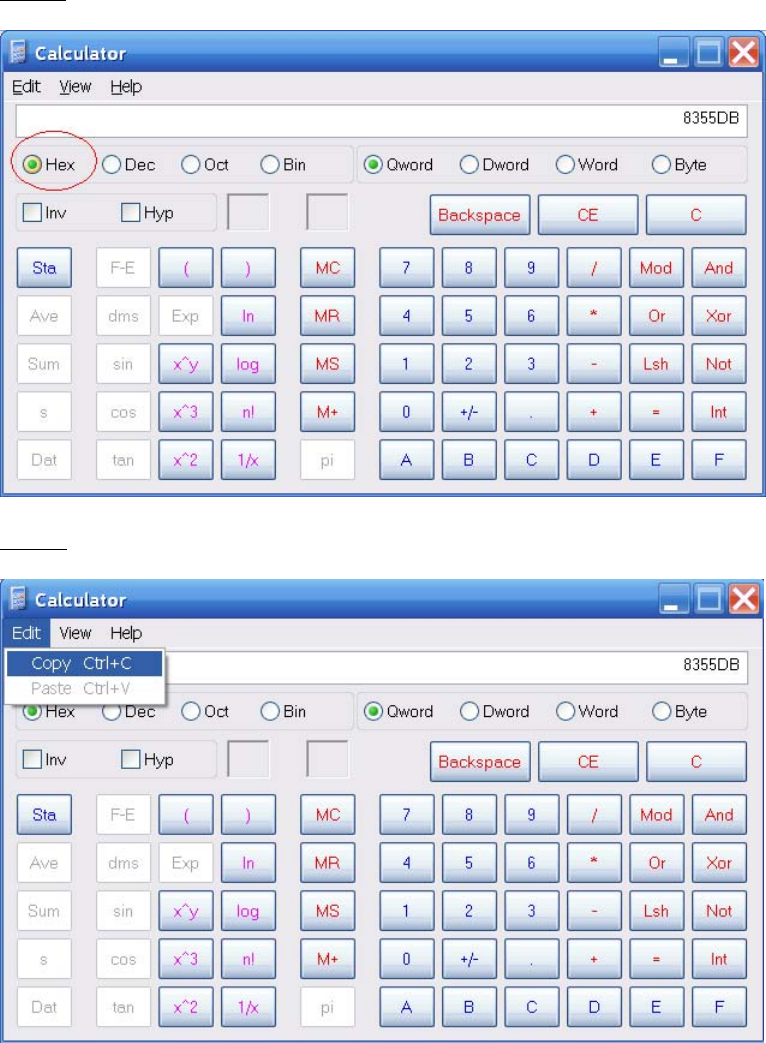 Click on “Hex” to convert