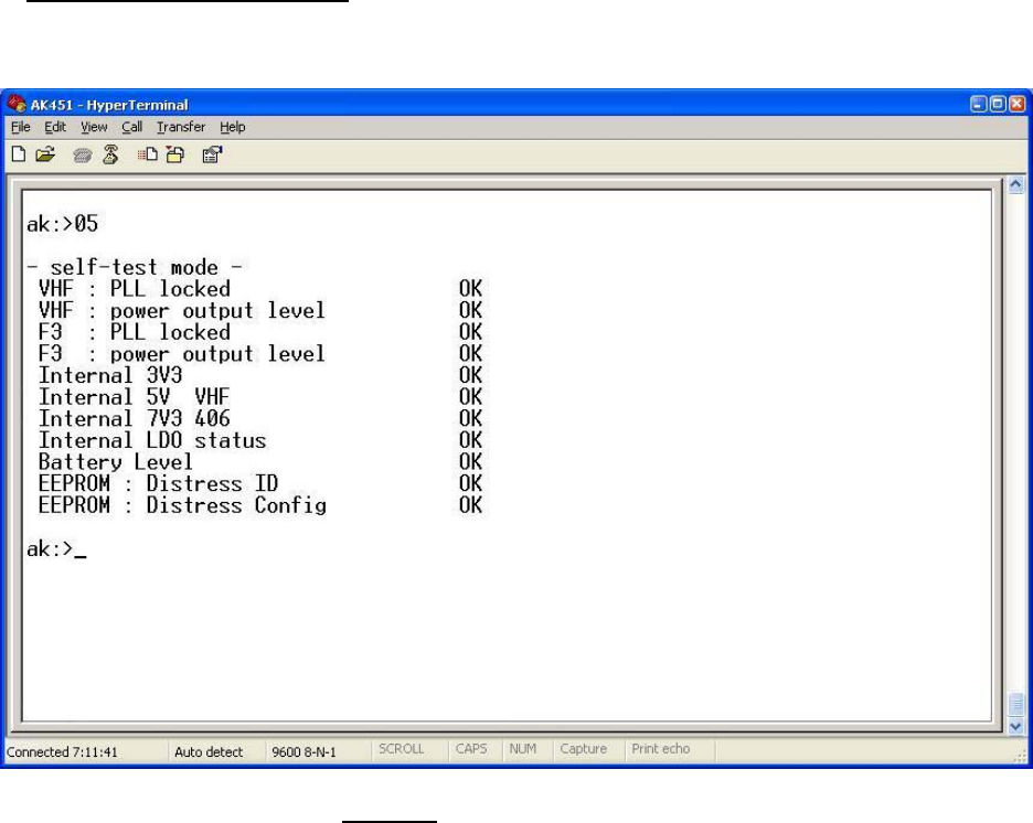 To perform ELT Maintenance Self-Test: Use command “ 05 “